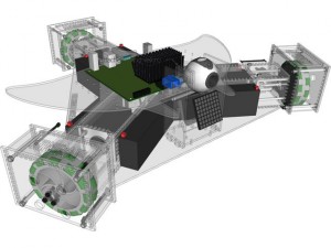The design was named KiwiRay, from kiwi-drive and stingray as the original design kind of looked like a stingray from above. Those design elements were later removed, but the motherboard mounting plate was shaped as a stingray instead.