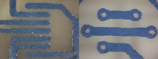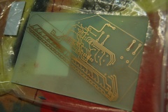 När kortet är etsat måste tonern tas bort innan lödning kan utföras. Detta görs enkelt med papper/trasa och aceton.